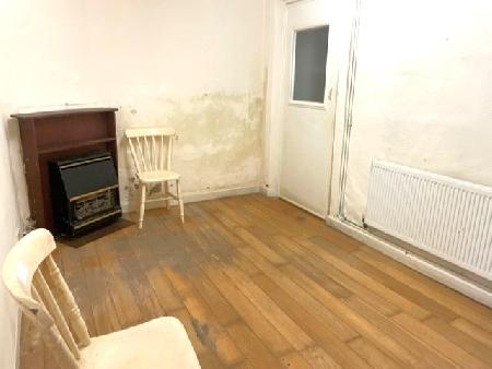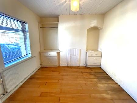 10ft.9 x 10ft.6. Cast-iron fireplace laminated wooden floor, radiator, 4 power points, 1 light and 1 window.
