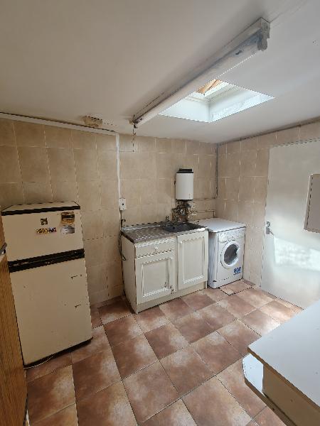 9ft.9 x 8ft.6. Some kitchen units, single drainer stainless steel sink, plumbed for washing machine, tiled floor & walls, 5 power points, 1 light and 1 Velux window.